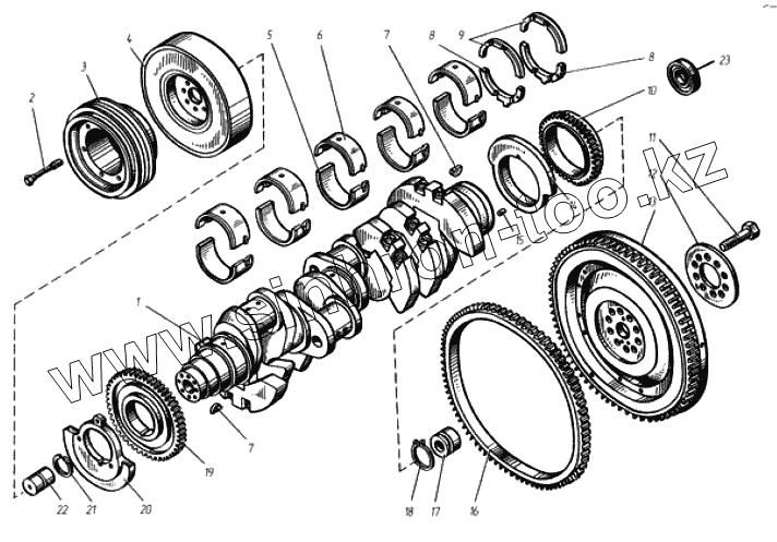 Каталог запасных частей к технике: ТМЗ Дизели ТМЗ-8421 - 85227. Коленчатый вал и маховик