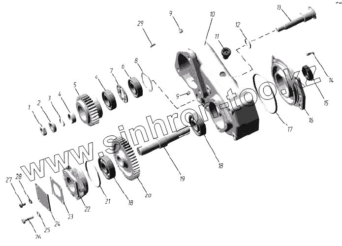 Каталог запасных частей к технике: ТМЗ Дизели ТМЗ-8421 - 85227. Редуктор насоса забортной воды