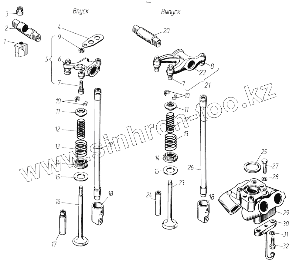 Каталог запасных частей к технике: ТМЗ-8481.10. Клапаны и толкатели