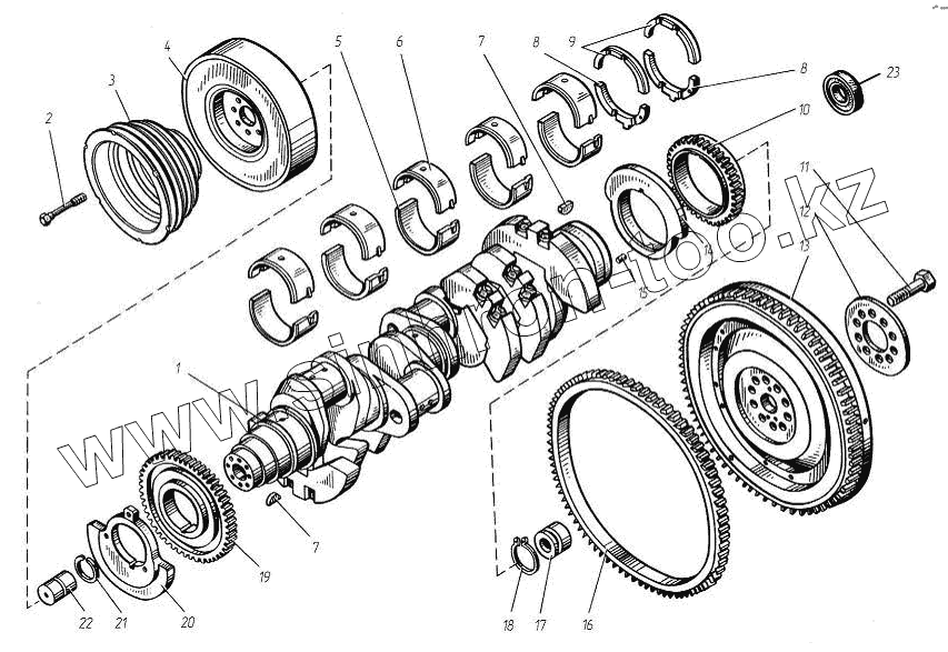 Каталог запасных частей к технике: ТМЗ-8486.10-04. Коленчатый вал и маховик