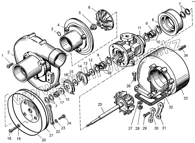 Каталог запасных частей к технике: ТМЗ-8486.10-04. Турбокомпрессор. Устройство