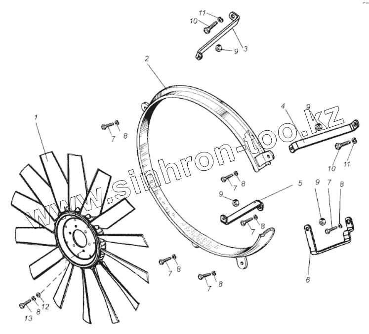 Каталог запасных частей к технике: ТМЗ-8525.10. Вентилятор, кожух вентилятора