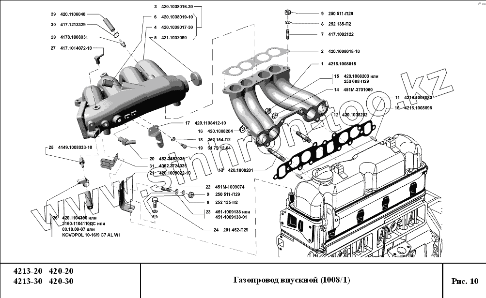 Каталог запасных частей к технике: УМЗ-4213, 420. Газопровод впускной