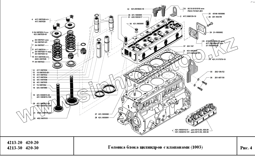 Каталог запасных частей к технике: УМЗ-4213, 420. Головка блока цилиндров с клапанами