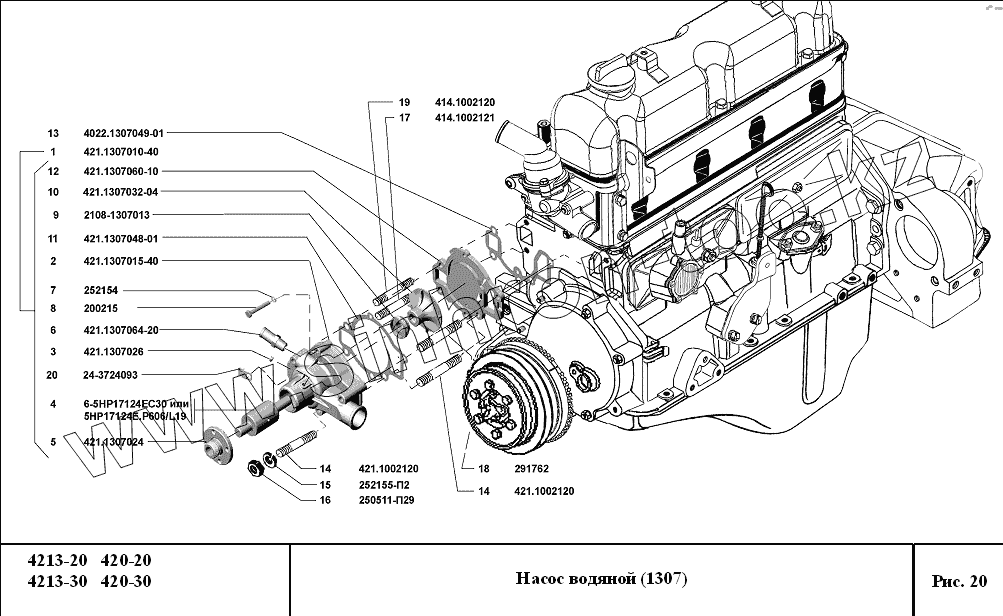 Каталог запасных частей к технике: УМЗ-4213, 420. Насос водяной