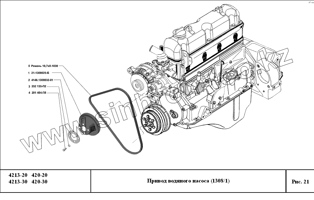 Каталог запасных частей к технике: УМЗ-4213, 420. Привод водяного насоса