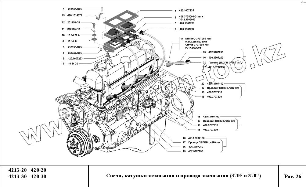 | 18 | 4216.3707100 | Провод к свечам зажигания 1 и 2 цилиндров в сборе | |