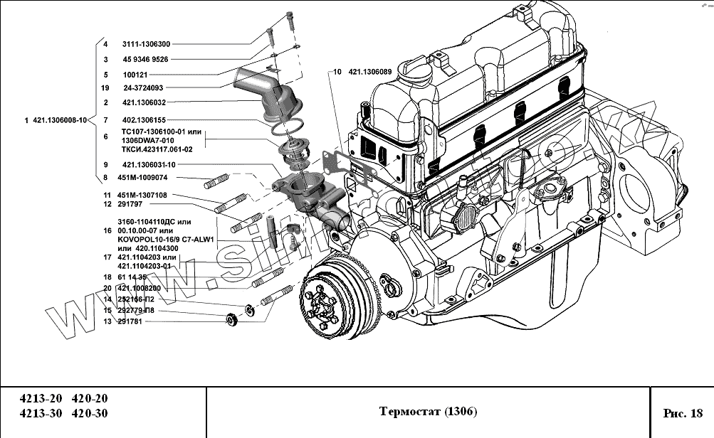 Каталог запасных частей к технике: УМЗ-4213, 420. Термостат