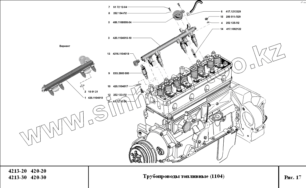 Каталог запасных частей к технике: УМЗ-4213, 420. Трубопроводы топливные
