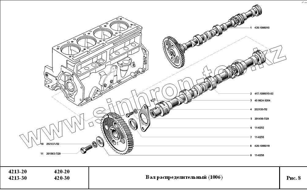 | 8 | 420.1006019 | Шестеpня pаспpеделительного вала с отметчиком в сборе | |
