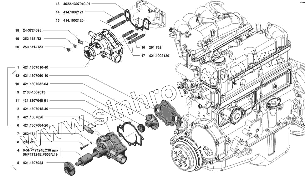 | 1 | 421.1307010-40 | Насос водяной в сборе | |
