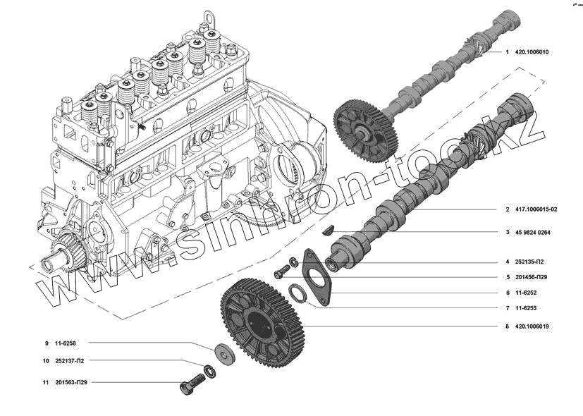 | 1 | 420.1006010 | Вал pаспpеделительный с шестеpней в сбоpе | |