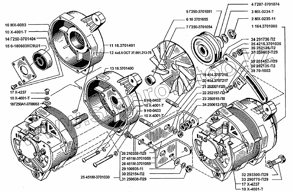 | 25 | 451М-3701030 | Кронштейн крепления генератора в сборе | |