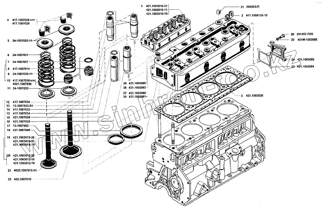 | 20 | 421.1003012-20 | Головка блока цилиндров с седлами и втулками в сборе | |