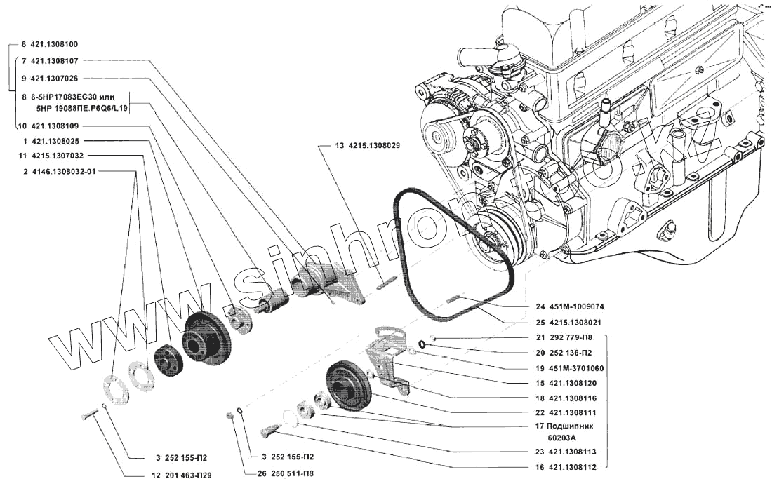 Каталог запасных частей к технике: УМЗ-4215. Привод водяного насоса