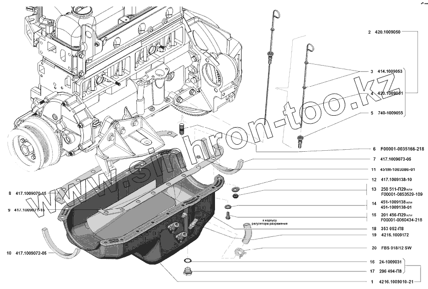 Каталог запасных частей к технике: УМЗ-42164 (Евро 4). Картер масляный