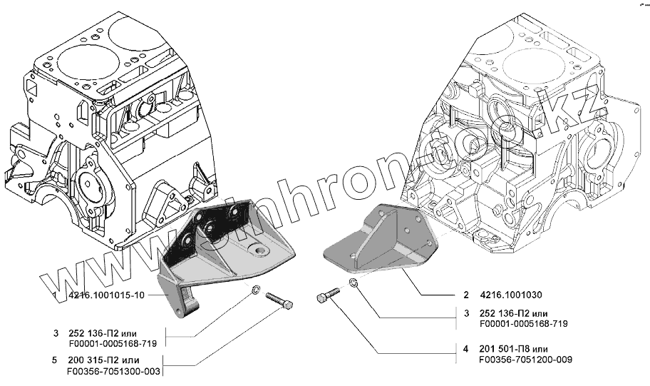 | 2 | 4216.1001030 | Кронштейн крепления подушки передней опоры двигателя к блоку правый | |