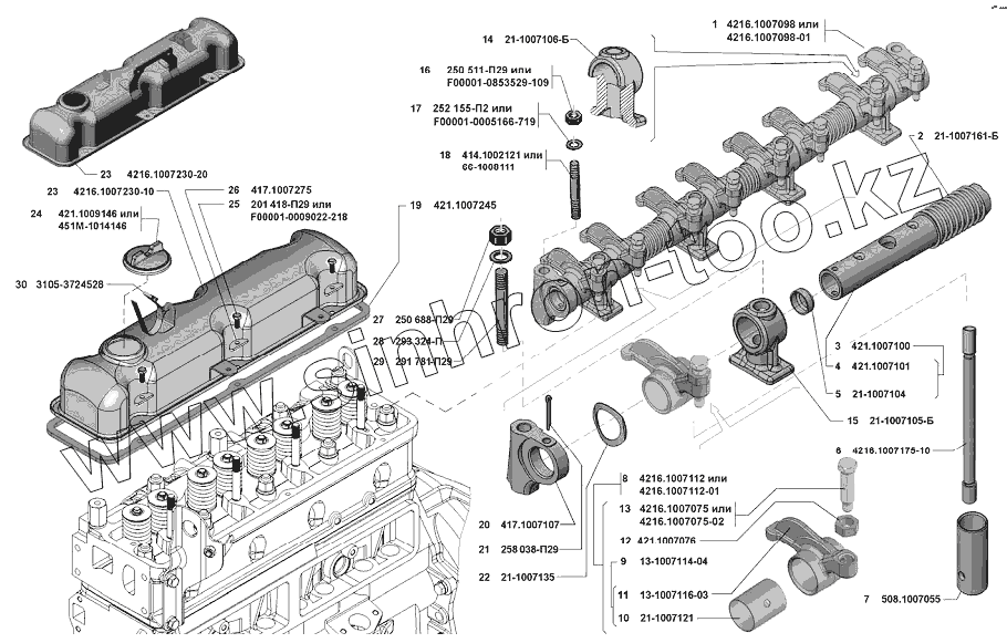 Каталог запасных частей к технике: УМЗ-42164 (Евро 4). Штанги, толкатели и крышка коромысел