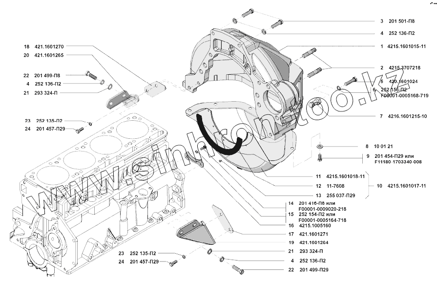 | 1 | 4215.1601015-11 | Картер сцепления, верхняя часть | |