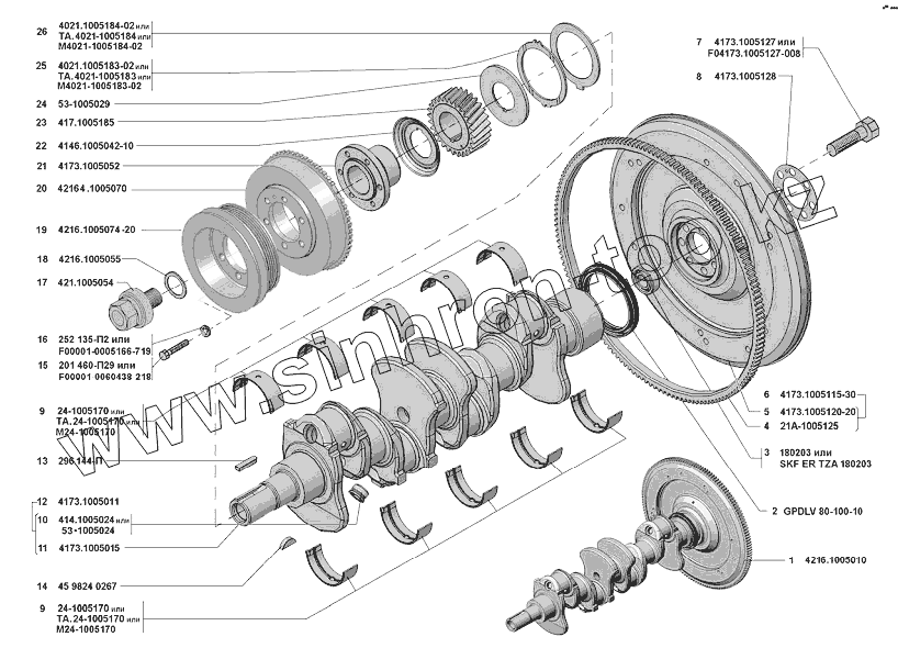 Каталог запасных частей к технике: УМЗ-42164 (Евро 4). Вал коленчатый и маховик
