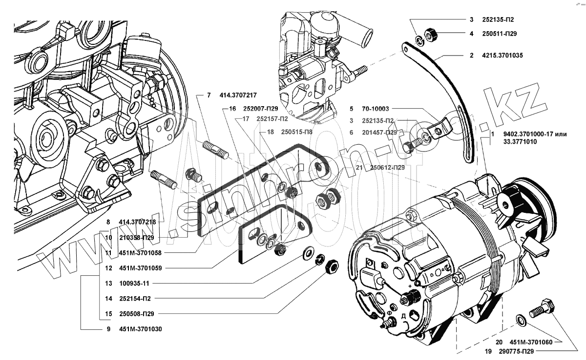 | 9 | 451М-3701030 | Кронштейн крепления генератора в сборе | |