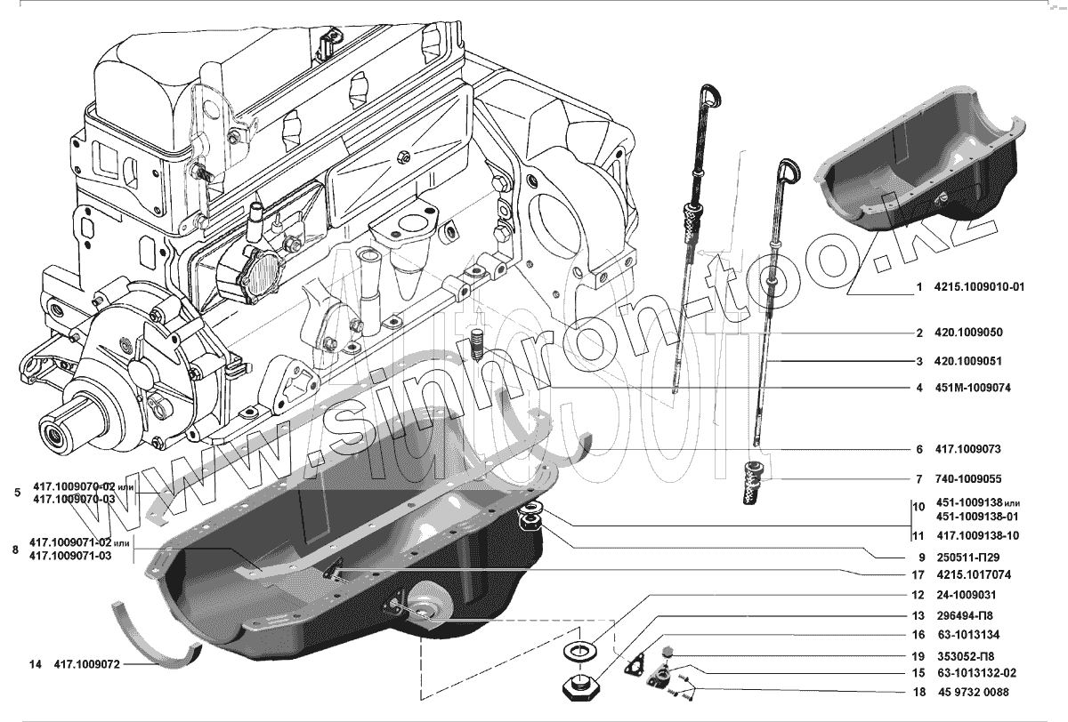Каталог запасных частей к технике: УМЗ-4216 (Евро 3). Картер масляный