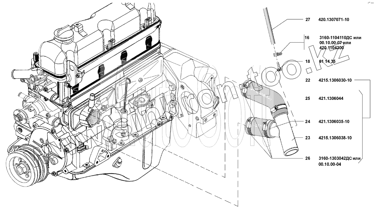 Каталог запасных частей к технике: УМЗ-4216 (Евро 3). Патрубок