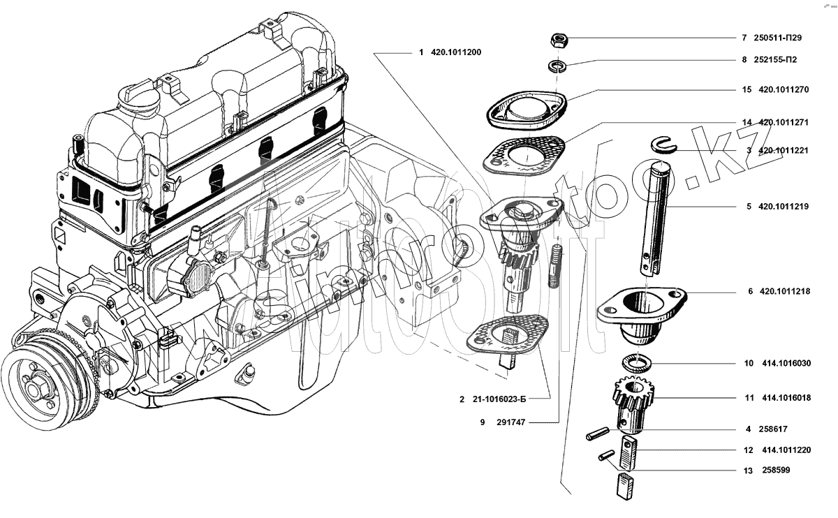| 15 | 420.1011270 | Крышка привода масляного насоса |