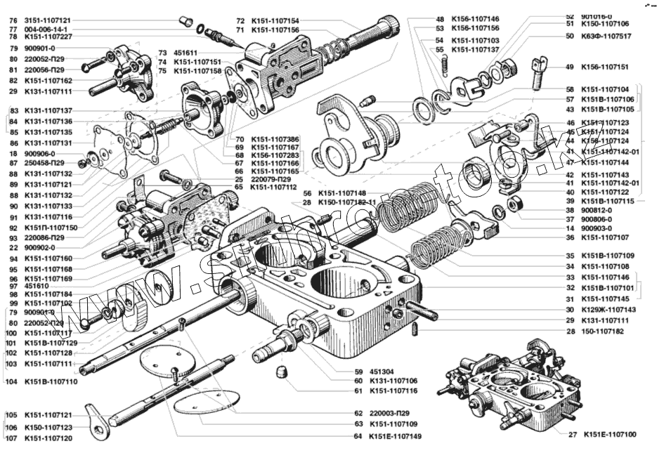 Каталог запасных частей к технике: УМЗ-421. Карбюратор К151Е