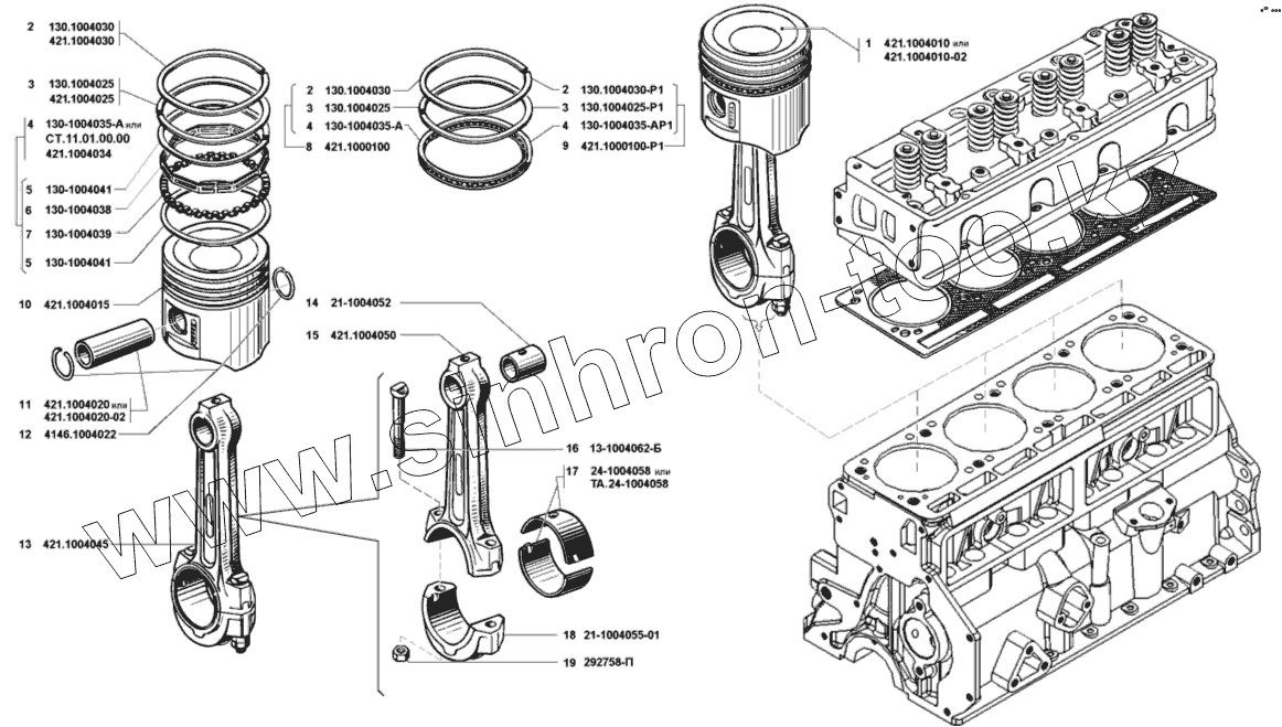 Каталог запасных частей к технике: УМЗ-421. Поршень и шатун