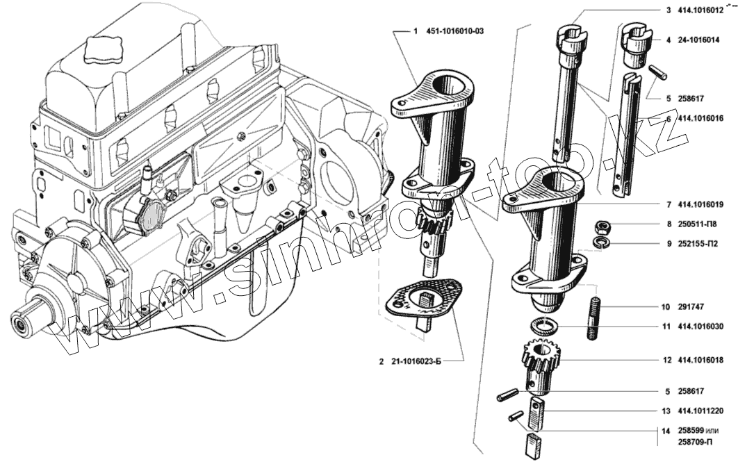 Каталог запасных частей к технике: УМЗ-421. Привод распределителя зажигания и масляного насоса