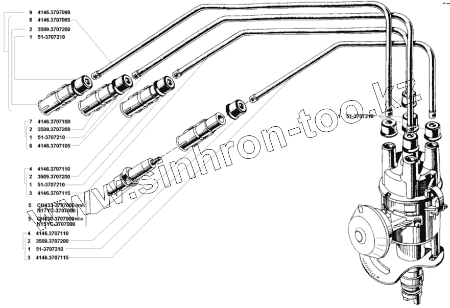 | 4 | 4146.3707110 | Провод с наконечниками к свечам 3 и 4 цилиндров в сборе | |