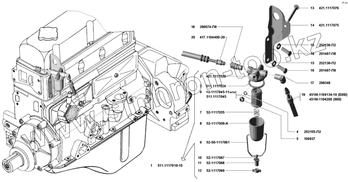 | 19 | 451М-1104200(900) | Шланг бензинопровода с трубкой от бензонасоса к фильтру тонкой очистки топлива | |