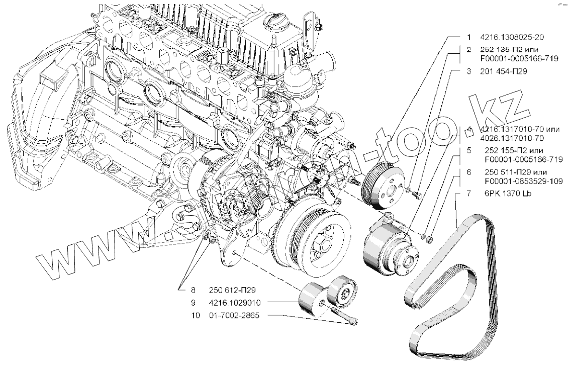Каталог запасных частей к технике: УМЗ-А274. Привод водяного насоса и вентилятора