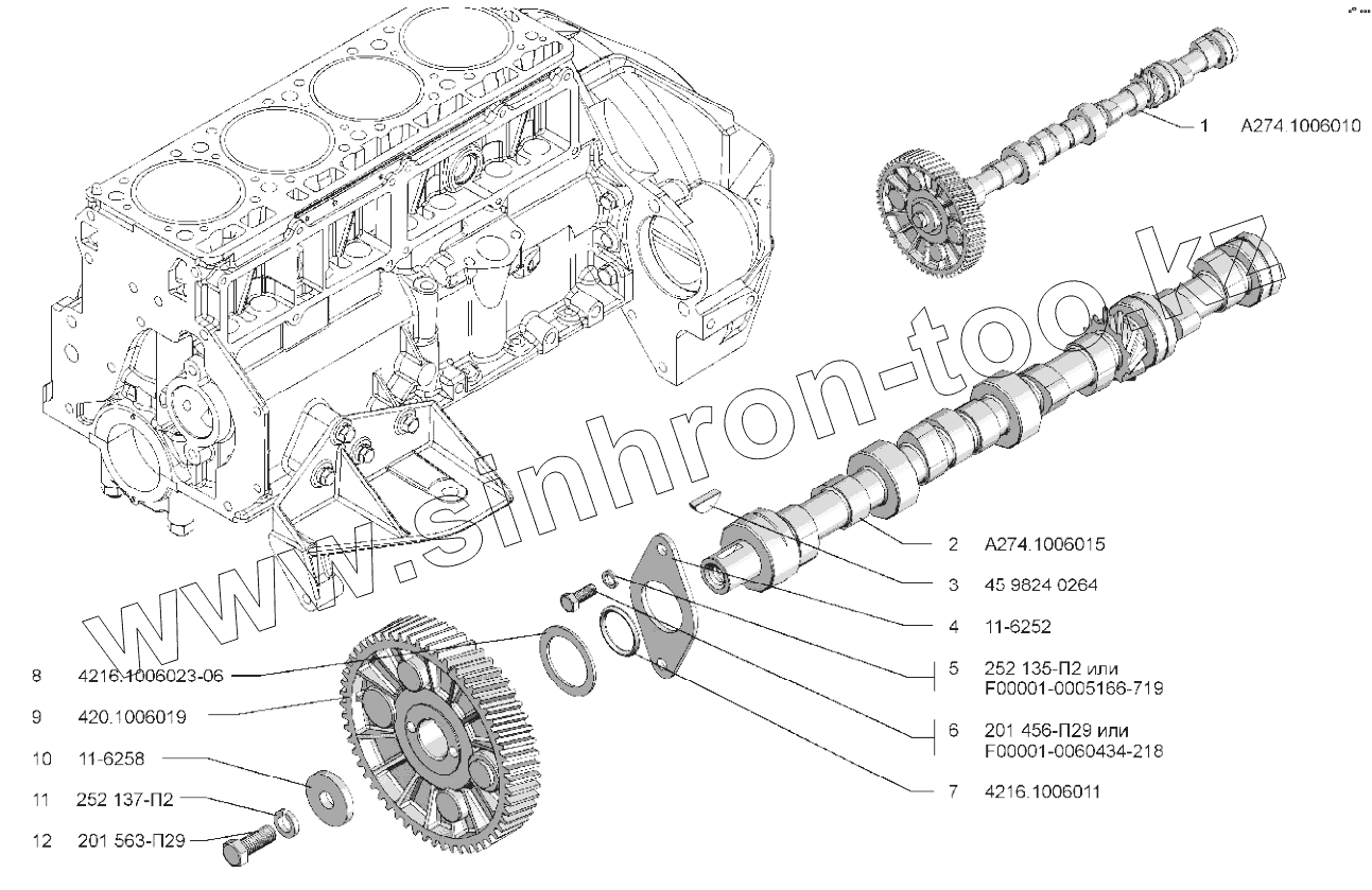 | 1 | А274.1006010 | Вал распределительный с шестерней в сборе | |