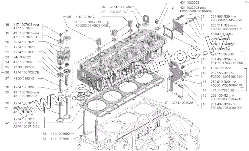 Каталог запасных частей к технике: УМЗ-А274. Головка блока цилиндров с клапанами