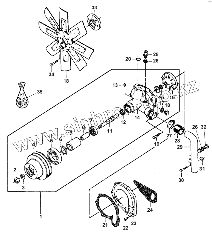 Каталог запасных частей к технике: Valmet 612 DSBIL. WATER PUMP