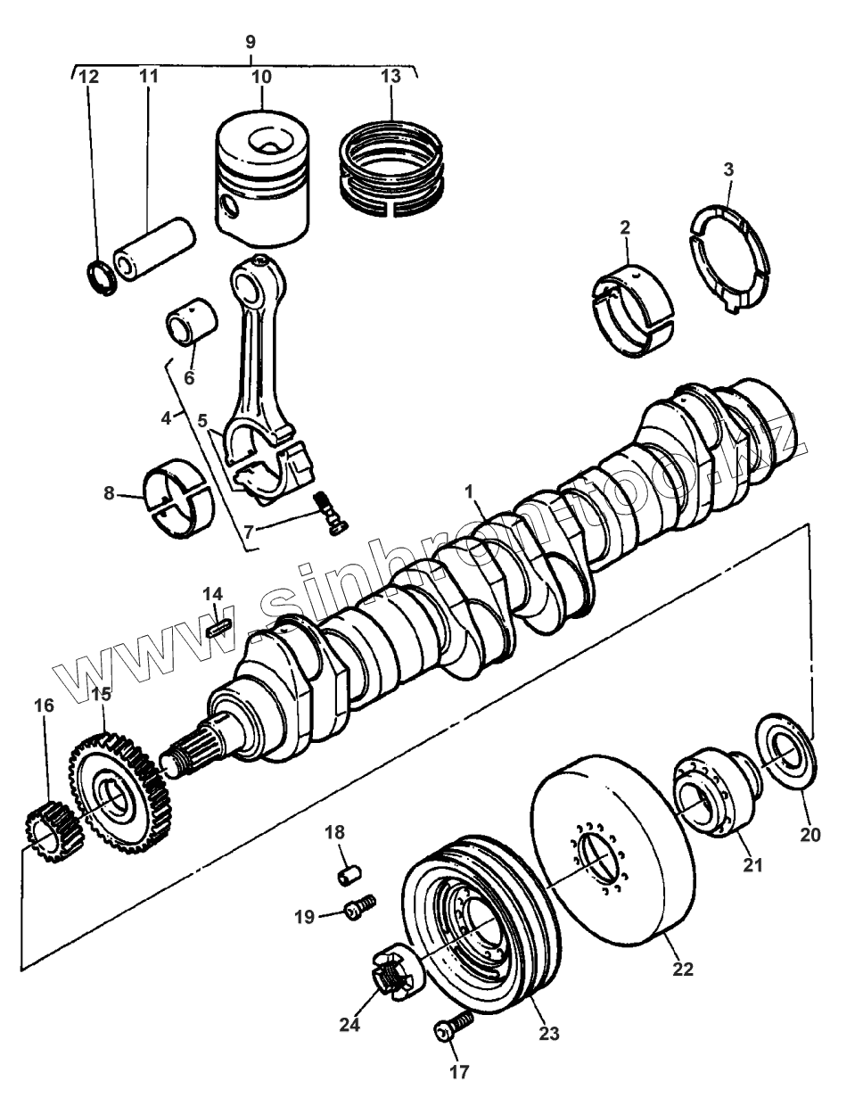 Каталог запасных частей к технике: Valmet 612 DSL. CRANKSHAFT, PISTONS AND CONNECTING RODS