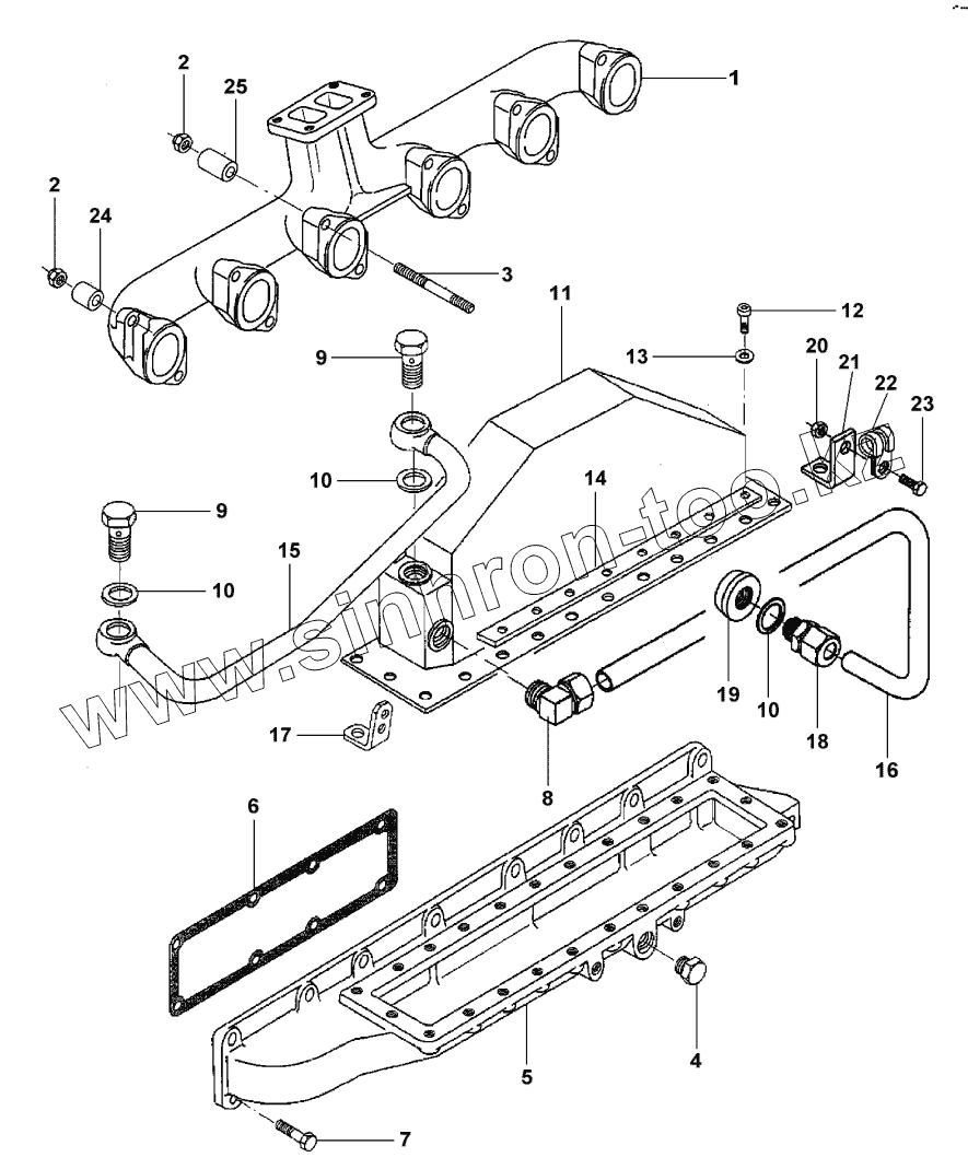 Каталог запасных частей к технике: Valmet 634 DSBIL. TURBOCHARGER-INLET AND EXHAUST MANIFOLD