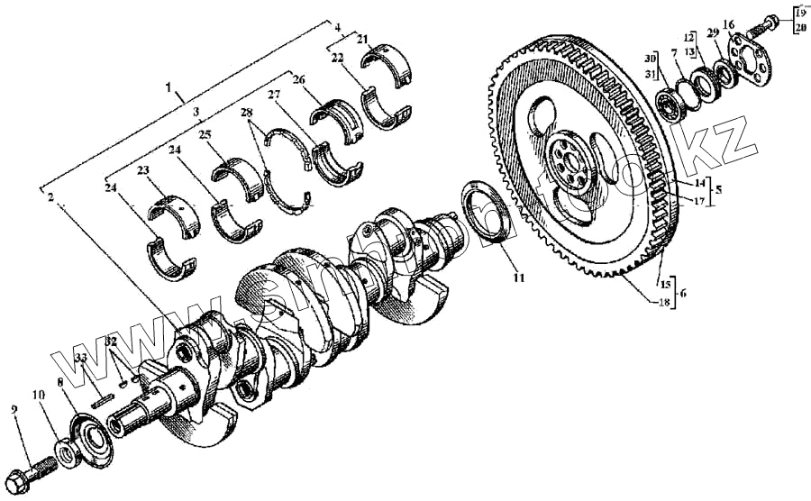 Каталог запасных частей к технике: ВТЗ Д-144. Вал коленчатый и маховик