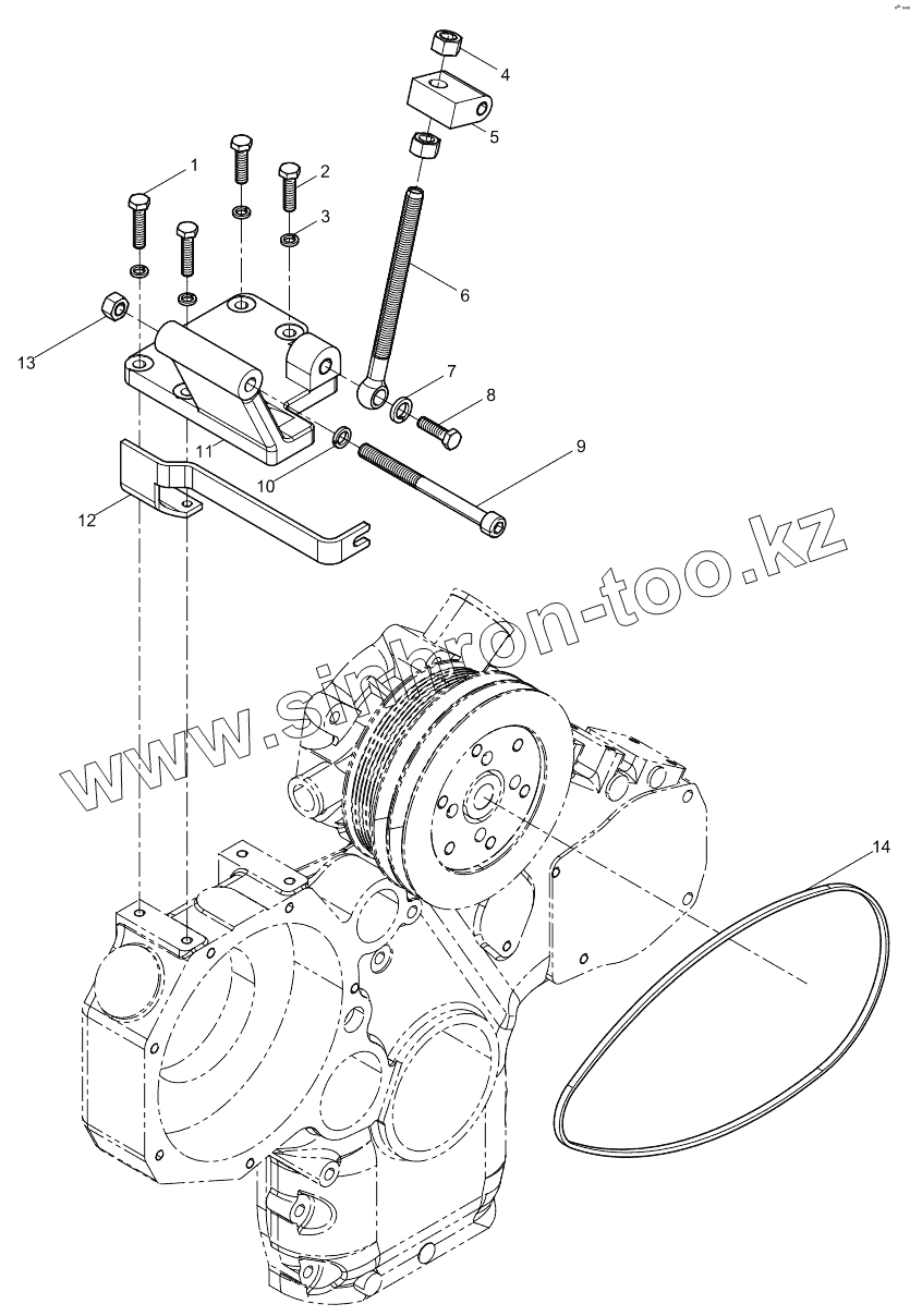 Каталог запасных частей к технике: Weichai 226B. Air conditioner compressor bracket assembly