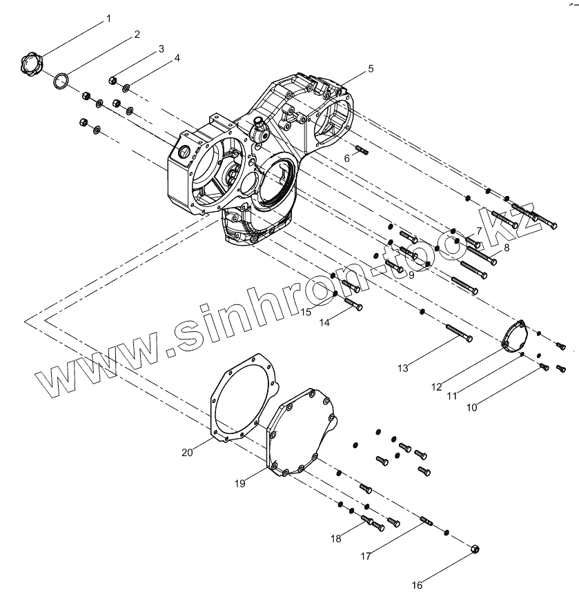 Каталог запасных частей к технике: Weichai 226B. Front wall cover assembly (gear end)