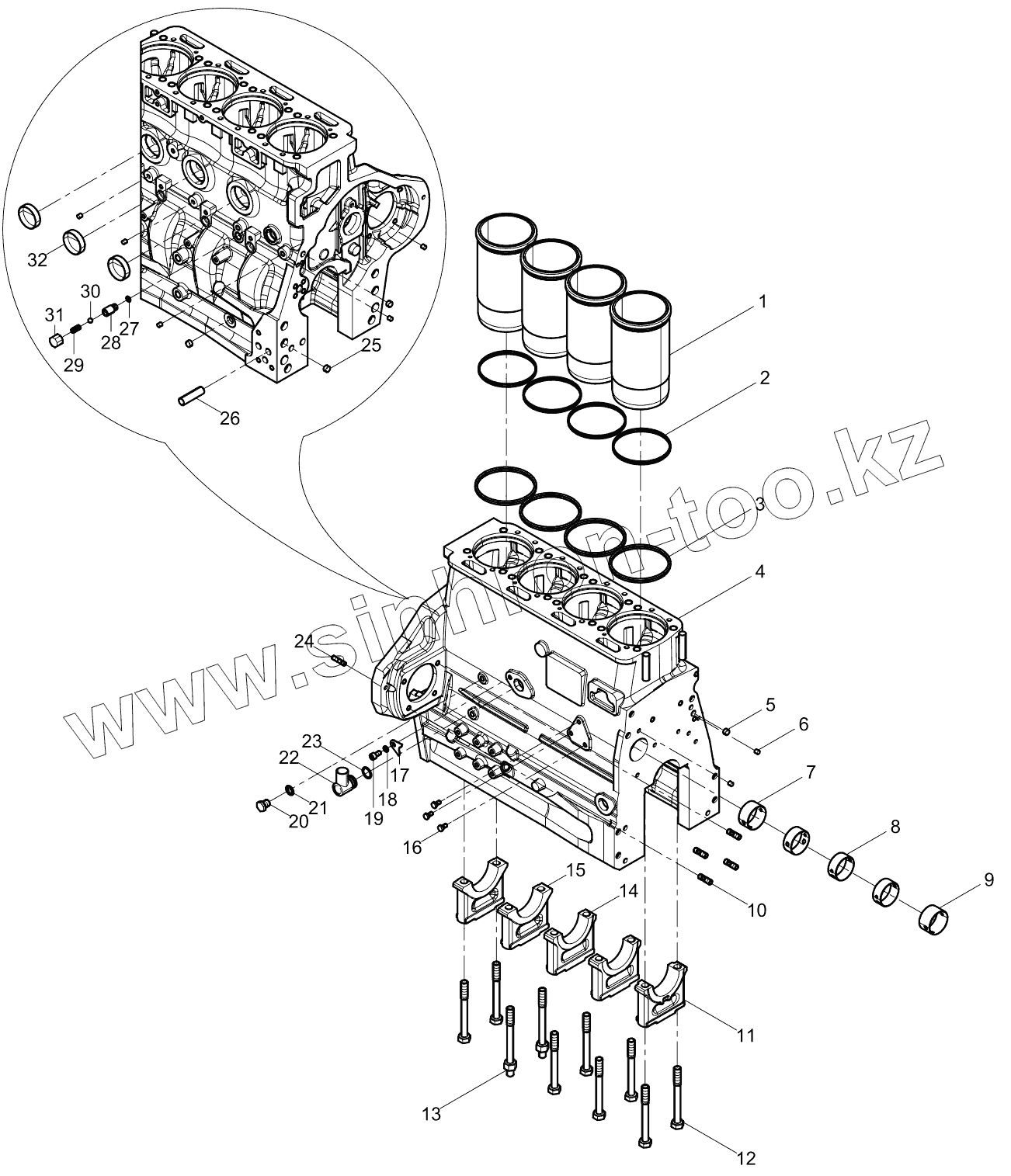 Каталог запасных частей к технике: Weichai 226B. Cylinder block subassembly