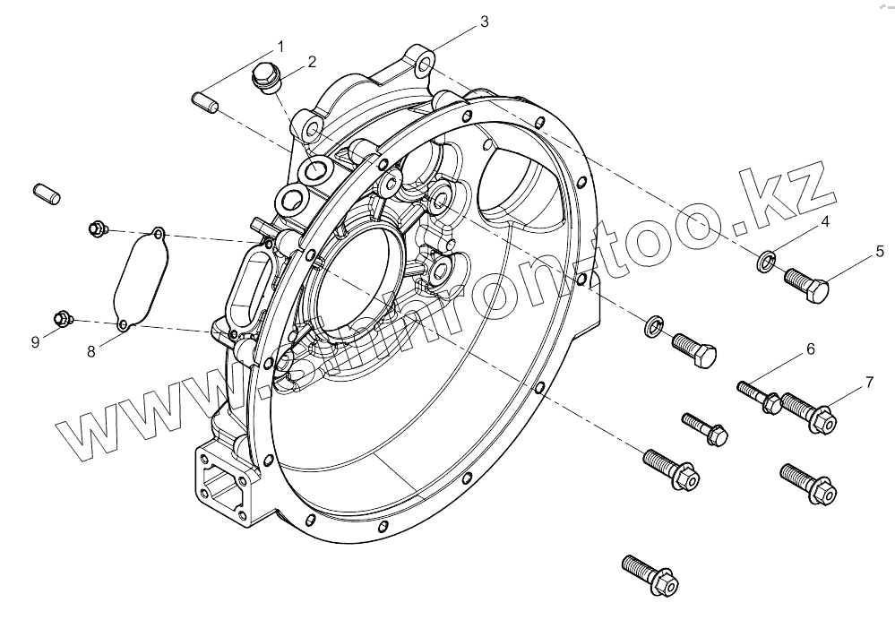 Каталог запасных частей к технике: Weichai 4M06G17. Flywheel Housing Group
