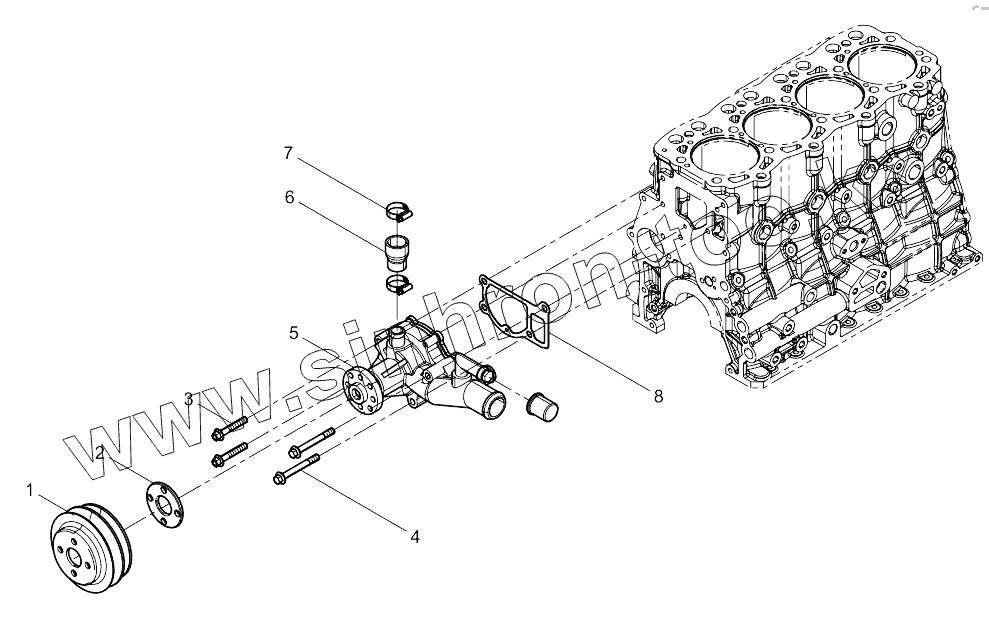 Каталог запасных частей к технике: Weichai 4M06G17. Water Pump Group