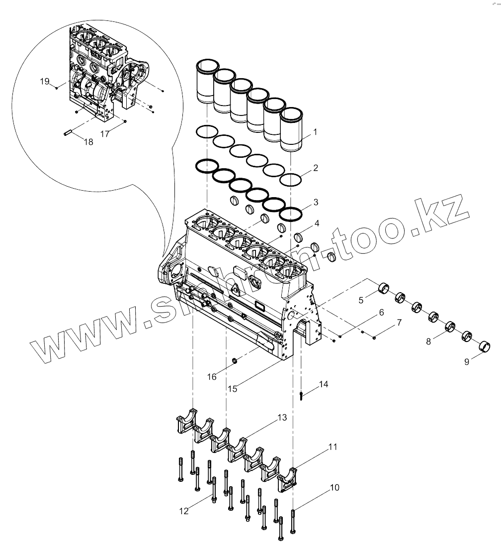 Каталог запасных частей к технике: Weichai 6M11 DHM11D0003. Crankcase assembly