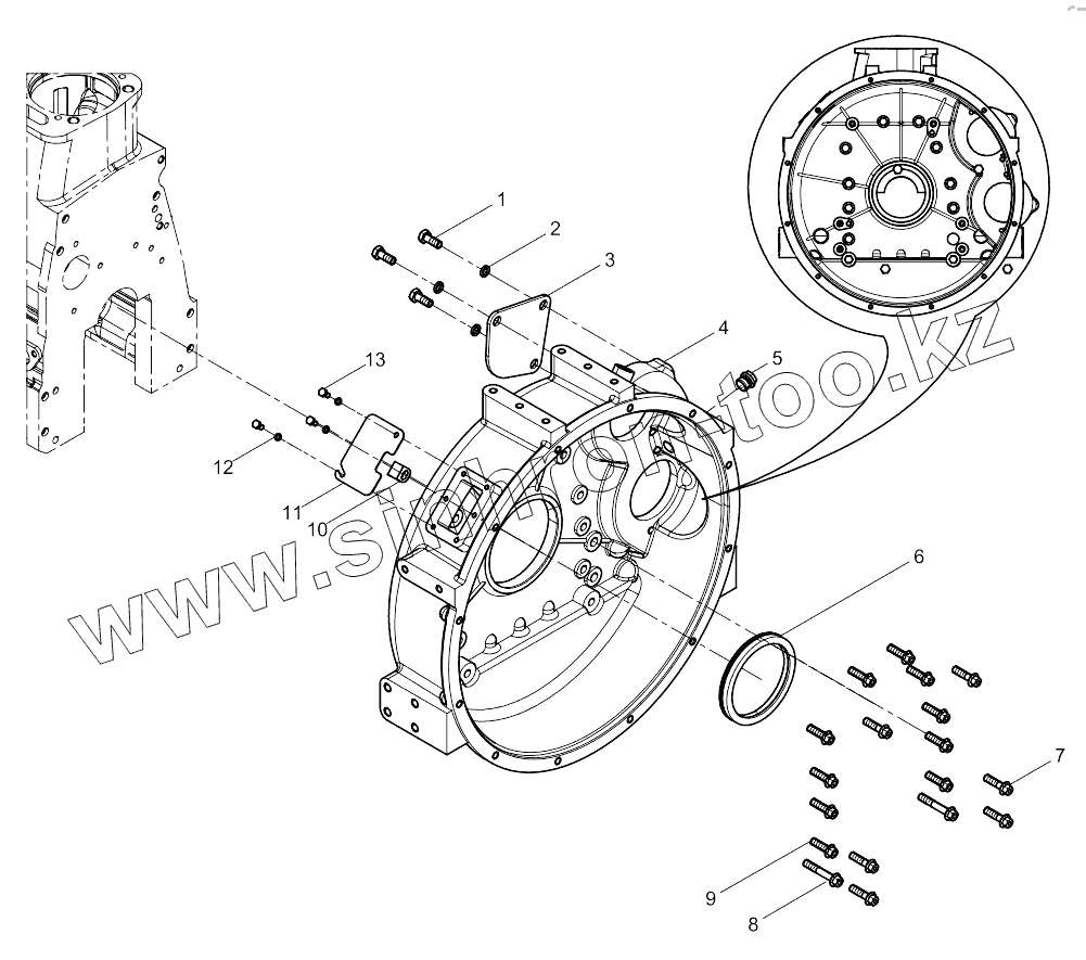 Каталог запасных частей к технике: Weichai 6M11 DHM11D0003. Flywheel Housing Assembly