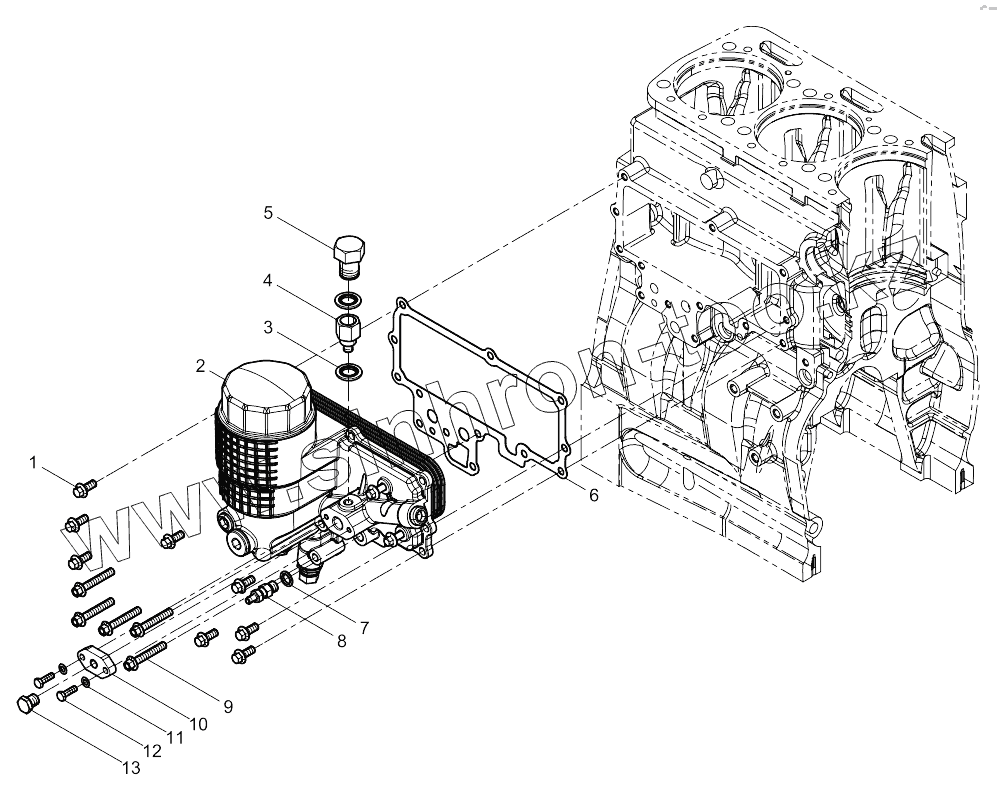 Каталог запасных частей к технике: Weichai 6M11 DHM11D0003. Oil Cooler Group