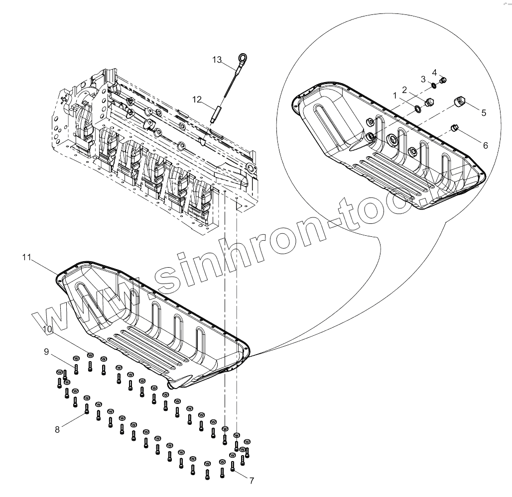 Каталог запасных частей к технике: Weichai 6M11 DHM11D0003. Oil Pan Assembly
