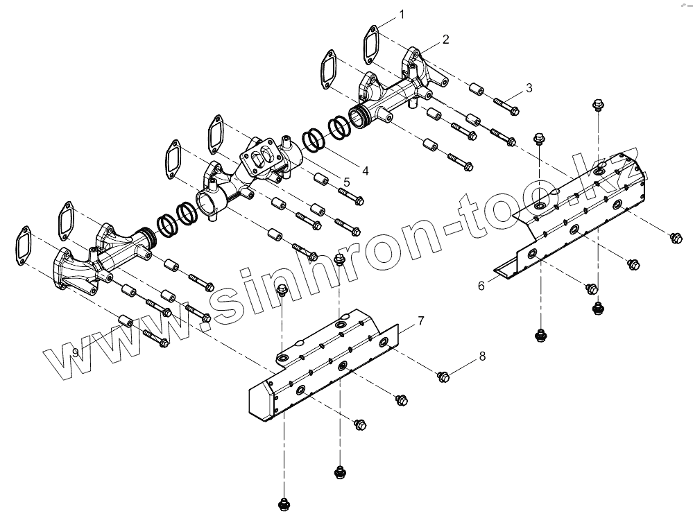 Каталог запасных частей к технике: Weichai 6M11 DHM16D0001. Exhaust Manifold Group